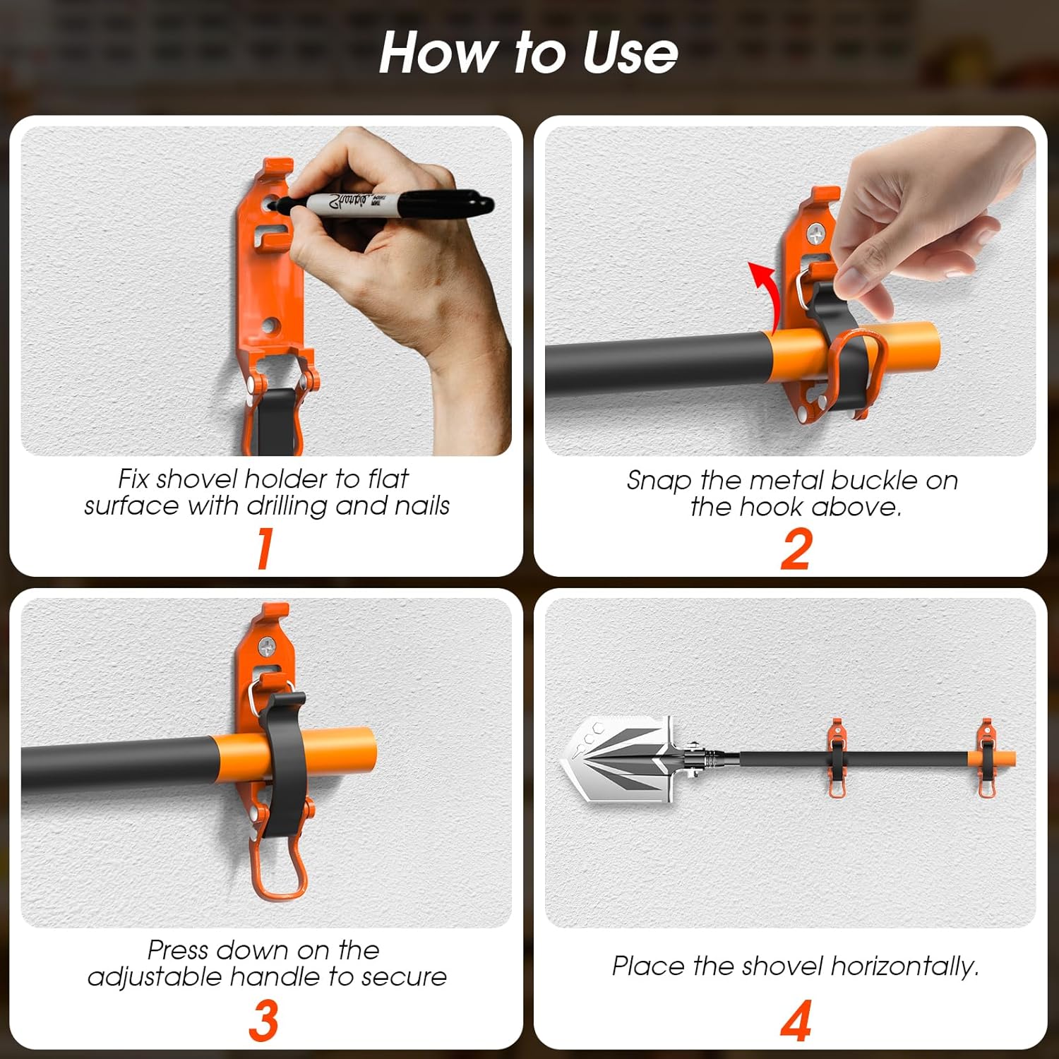 🔒 Secure & Stable Grip: The rubber clamp and metal buckle system holds tools tightly in both horizontal and vertical positions, preventing rattling or shifting during rough off-road driving or daily use.